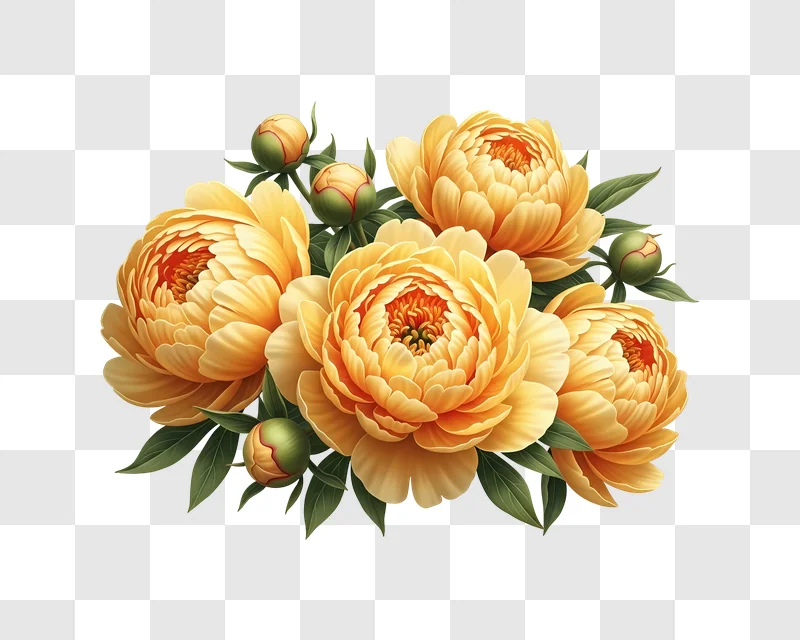 This vibrant image showcases a delightful arrangement of yellow peonies, their soft petals unfurling in a cheerful display. As a high-quality graphic, this free image is perfect for various design resources, offering a bright touch to your projects. Download this illustration to enhance your web design, brighten social media posts, create eye-catching posters, or add a fresh element to your branding and blogs, all without any cost.