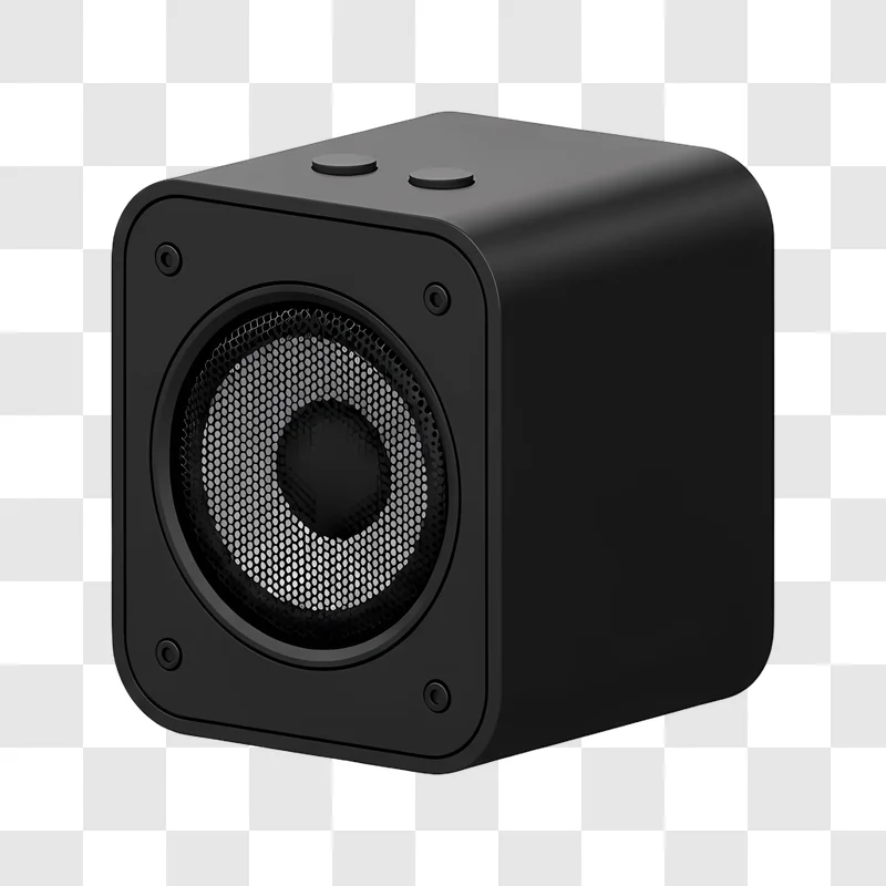 This Black Cube Speaker With Silver Grille image is available for free download, offering a high quality graphic of a sleek, dark cubic speaker featuring a distinctive silver grille design. This illustration serves as an excellent design resource for various applications, including web design, social media posts, branding materials, or blogs. Acquire this image to enhance your digital projects with a professional and modern visual element.