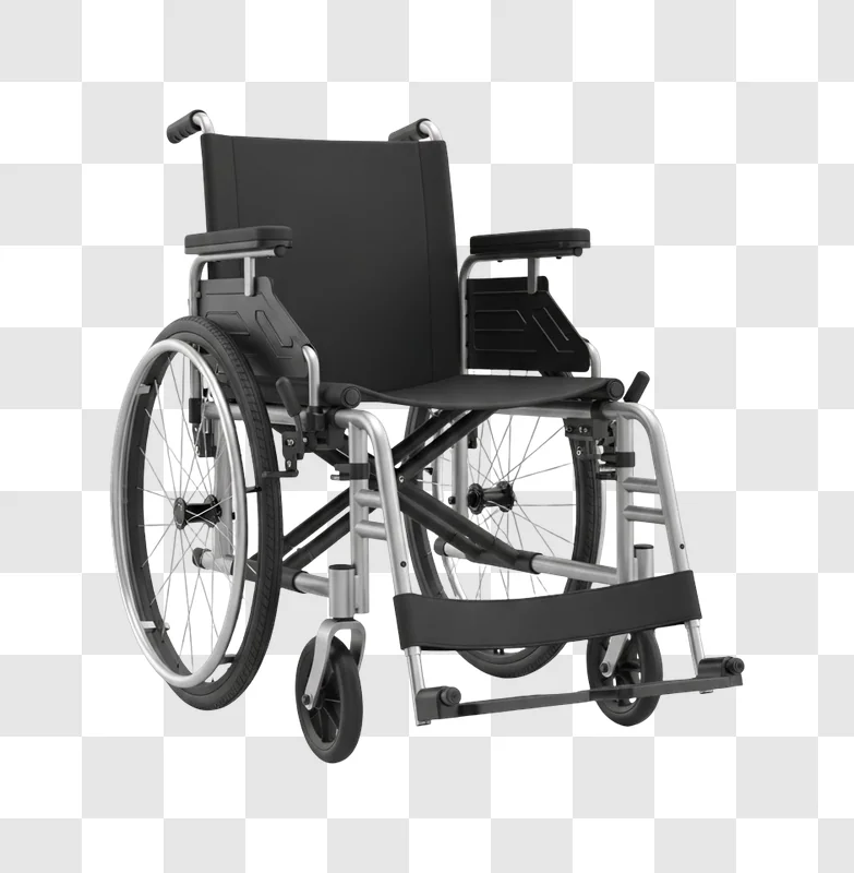 This free image features a sleek black manual wheelchair, designed for disabled people, showcasing its practical and robust construction. The high quality graphic provides a clear illustration of the wheelchair’s frame, wheels, and seating, making it an excellent design resource for various projects. You can easily download this image for use in web design, social media posts, educational materials, or blogs, offering a versatile visual without any cost.