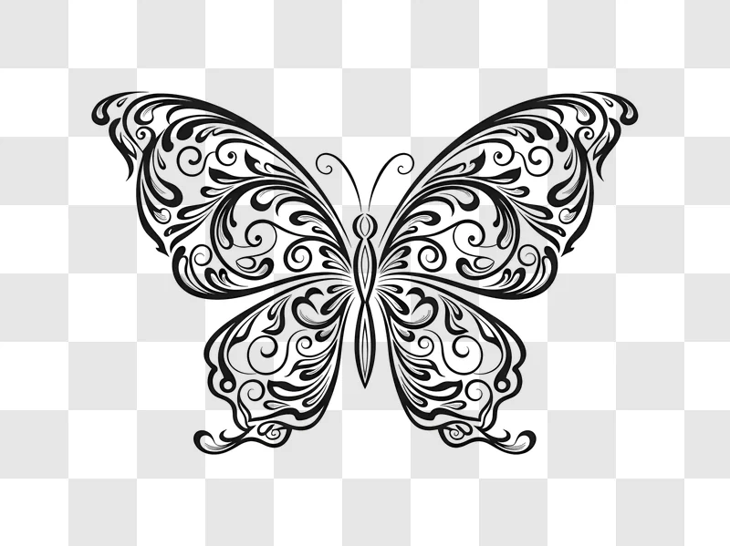 The Black Ornate Butterfly Wing Design presents a striking, elaborate pattern, showcasing intricate details and a sophisticated aesthetic perfect for various creative projects. This high quality graphic is available for free download, offering a versatile illustration for enhancing web design, social media posts, branding materials, or blog content. Utilize this captivating design resource to add a touch of elegance and complexity to your visual communications, ensuring a polished and professional look without any cost.