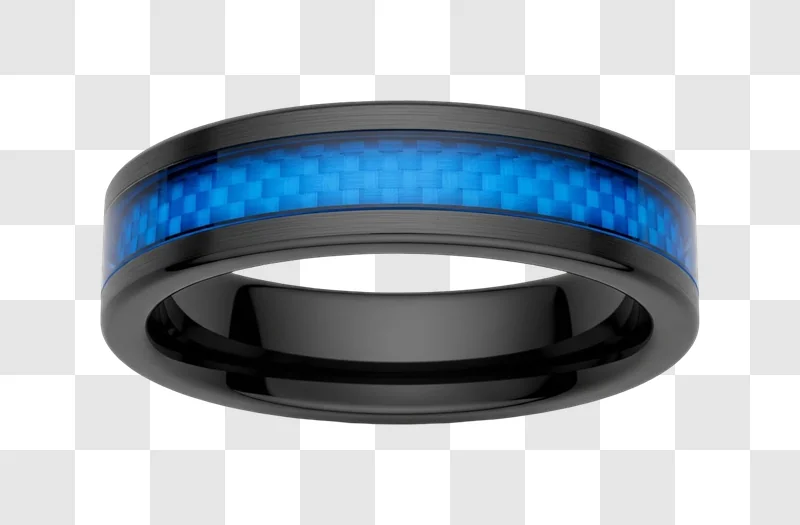 Download a free image of a Black Ring With Blue Inlay Detail, ideal for various design projects.