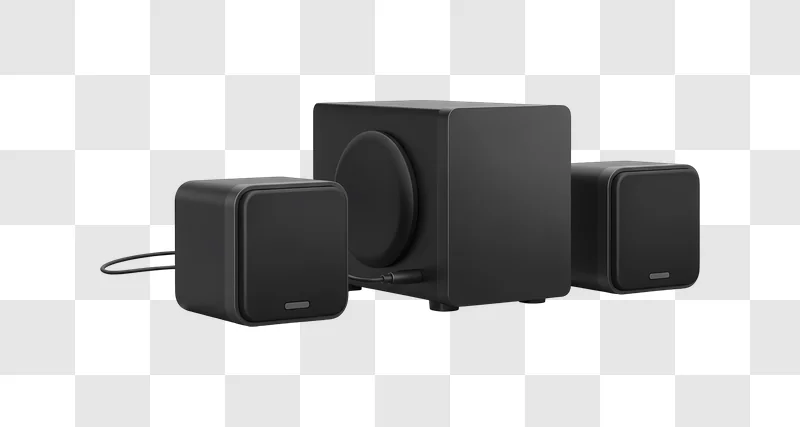 Download a free Black Speaker System Product Shot, a high-quality graphic perfect for web design, social media, and more. Get stunning visuals now.