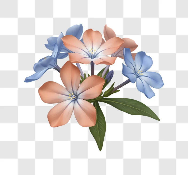 Download the beautiful Blue and Peach Digital Flower Arrangement for free. Enhance your designs with this elegant, high-quality floral image, perfect for various creative projects.