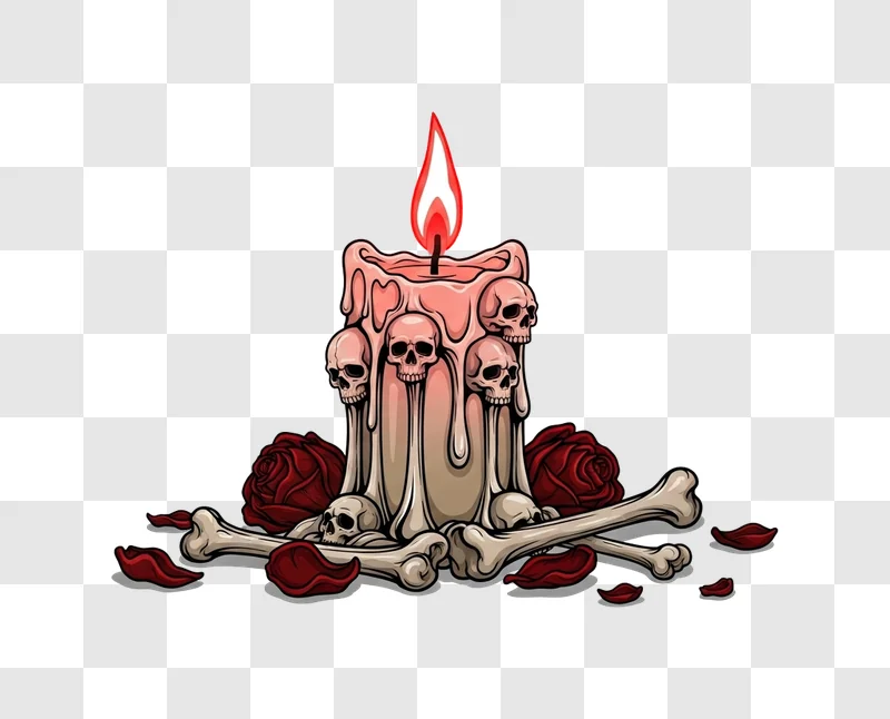 Discover this captivating free image featuring a Burning Skull Candle With Bones and Red Roses, a striking visual perfect for adding a touch of dark romance or gothic elegance to your projects. This high-quality graphic showcases intricate details, making it an excellent design resource for various applications. Consider using this illustration for your next web design element, social media post, promotional poster, or blog article to instantly elevate your content’s aesthetic appeal. Download this unique piece today to bring a dramatic flair to your creative endeavors.