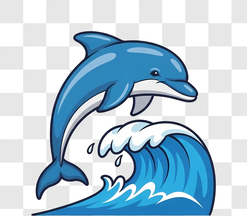 Get your free image download of a Cartoon Blue Dolphin Jumping Over Wave for creative projects. High-quality graphic available now.