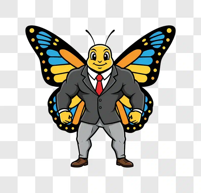 Download this free Cartoon Butterfly Businessman Mascot Character for your creative projects.