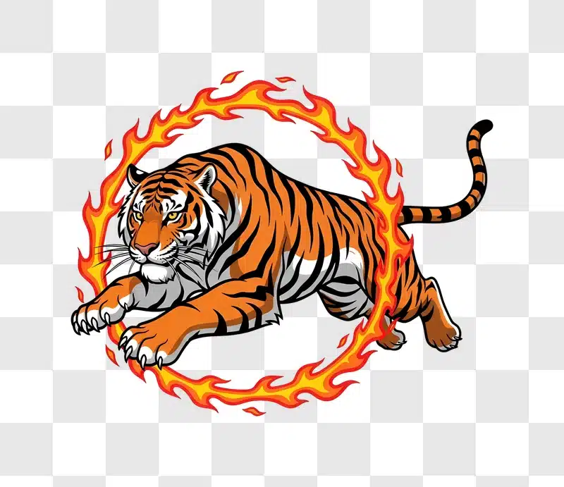 cartoon tiger leaping through fire ring edited