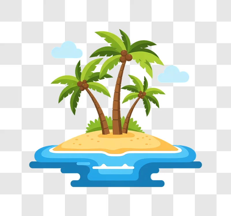 Discover and download a charming Cartoon Tropical Island With Palm Trees and Ocean image for free. Perfect for creative projects and web design.