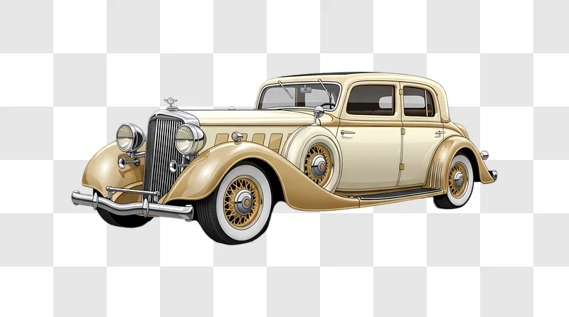 Immerse yourself in a timeless piece of automotive art with this Classic American Sedan Beige Gold Illustration, a captivating visual that transports you back to an era of elegance and iconic design. This meticulously crafted artwork features a vintage four-door sedan, rendered with a sophisticated blend of warm beige and rich gold tones, highlighting its stately silhouette and classic chrome accents. The illustration’s smooth lines and subtle shading evoke a sense of nostalgia, making it perfect for a variety of creative projects. Whether you’re enhancing a blog post about vintage cars, designing a retro-themed website banner, creating unique social media content, or adding a touch of classic charm to a presentation, this versatile image offers an aesthetic that is both distinguished and inviting. Its clean lines and appealing color palette also make it an excellent choice for print materials like greeting cards, posters, or even as a distinctive background for digital advertisements seeking a refined, old-school appeal.