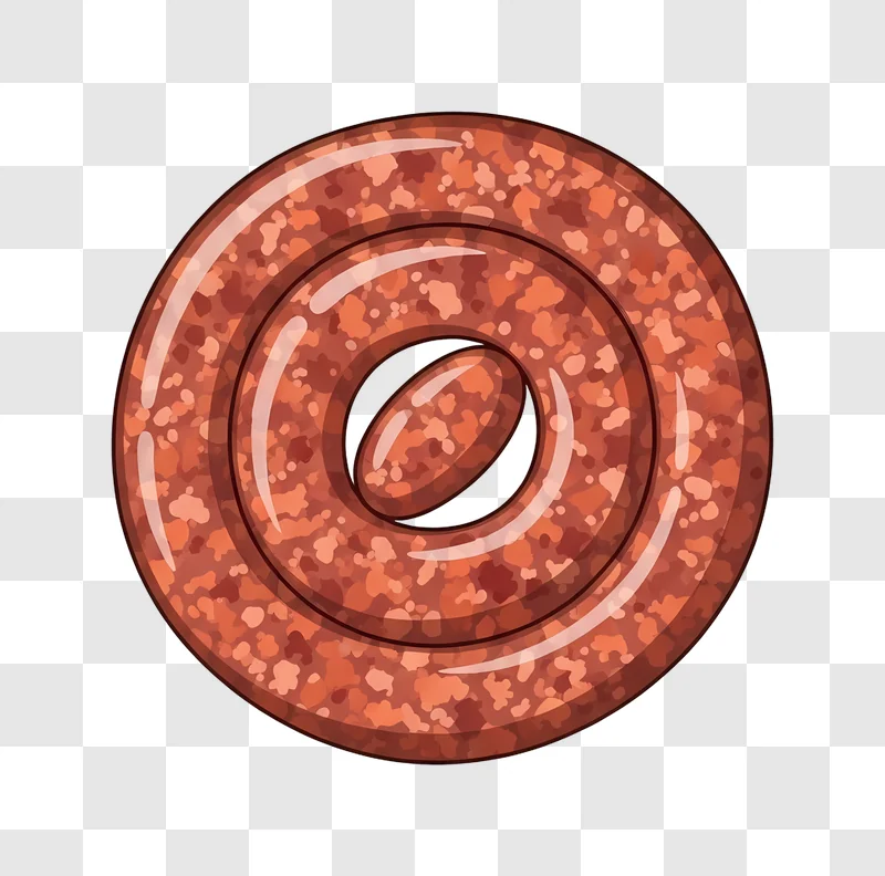 This close up of a circular meat sausage link presents a high-quality graphic, perfect as a free image download for various design needs. The detailed texture and rich color of the sausage are clearly visible, offering a versatile illustration for projects. Utilize this design resource for web design, social media posts, food blogs, or even menu branding, adding an authentic touch to your content.