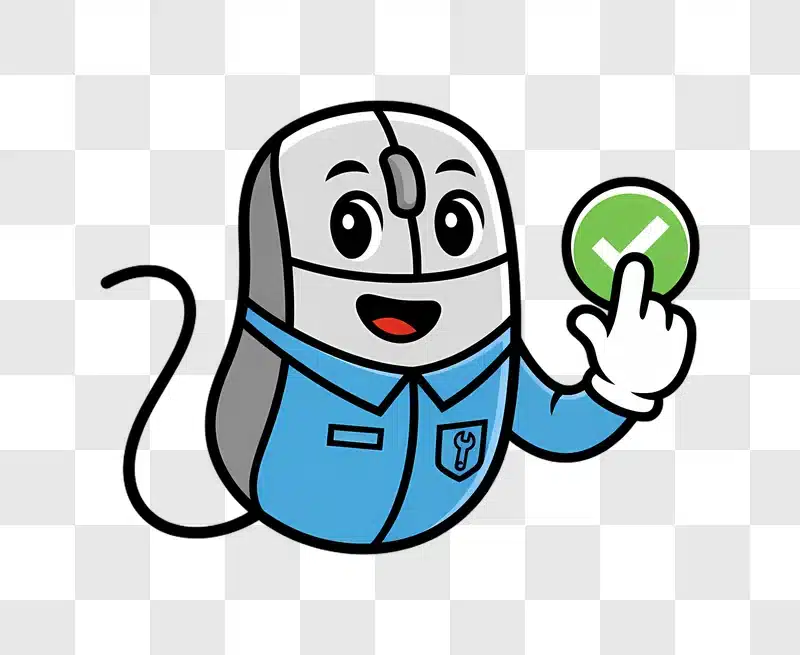 Computer Mouse Character Holding a Green Check Mark Icon