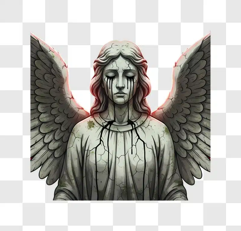 Download this stunning Crying Angel Statue With Cracked Stone Texture and Large Wings for free. Perfect for adding dramatic artistry to your projects.