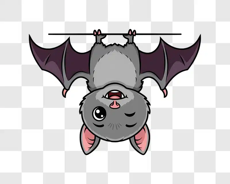 Get your free image of a cute cartoon bat hanging upside down on a branch perfect for your creative projects.