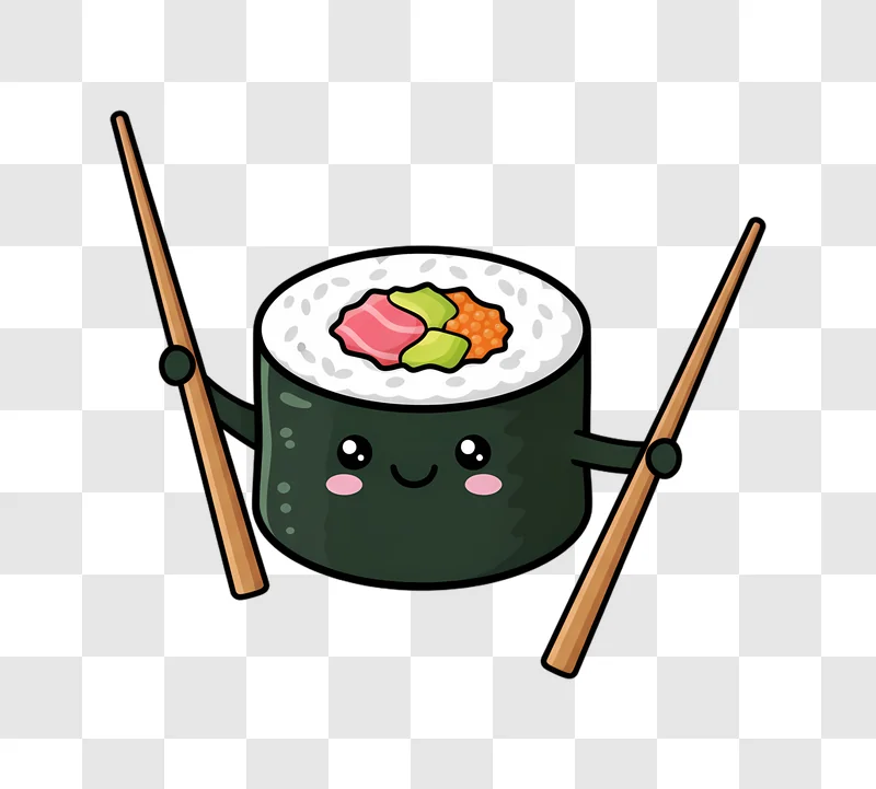 Get your free image of a Cute Sushi Roll Character Holding Chopsticks perfect for your next project.