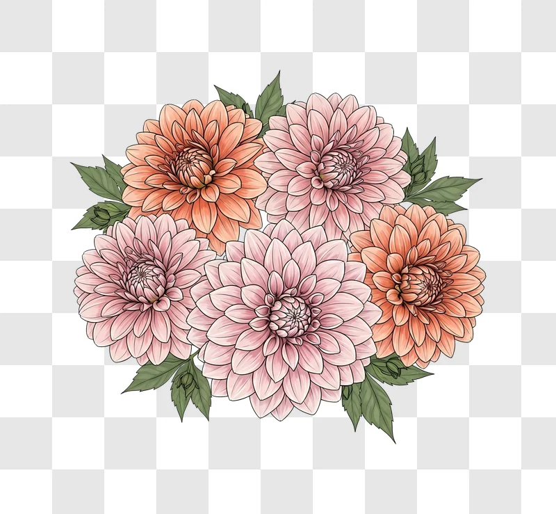 Immerse yourself in the vibrant charm of this Dahlias Flowers Illustration Pink Orange, a high-quality graphic that captures the delicate petals and rich hues of blooming dahlias. This free image download offers a versatile illustration perfect for enhancing your creative projects, whether for web design, social media posts, blog headers, or even branding elements. Its detailed artistry provides an excellent design resource for anyone seeking a touch of floral elegance in their digital content, adding visual appeal without complication.