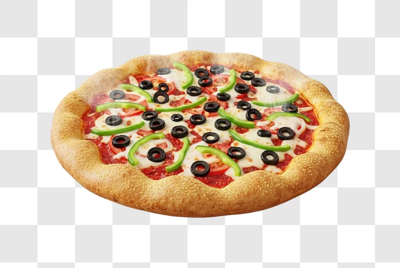 This Delicious Pizza With Olives and Peppers image offers a vibrant, close-up view of a perfectly baked pizza, showcasing melted cheese, bright green olives, and colorful red and yellow bell peppers atop a golden crust. This high quality graphic is available for free download, serving as an excellent design resource for various projects. Utilize this illustration for web design, social media posts, blog content, or even as part of a branding campaign, enhancing visual appeal with its clear and appetizing composition.