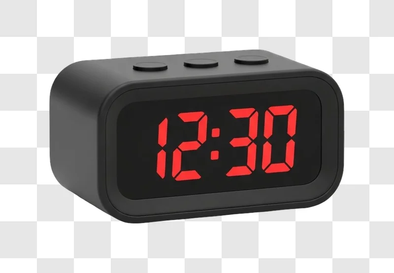 This free image features a sleek Digital Alarm Clock With Red Display, showcasing clear, bright red digits against a dark, contrasting background, perfect for adding a touch of modern utility to any project. This high quality graphic is an excellent download for designers seeking a versatile illustration, ideal for web design, social media posts, blog headers, or even as a unique design resource for presentations.