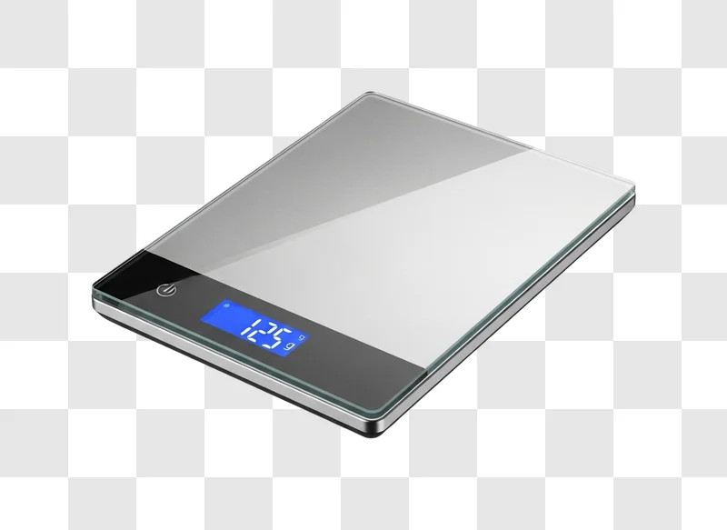 This free image features a sleek Digital Kitchen Scale With Blue Display, showcasing its modern design with a clear, illuminated digital readout on a pristine white surface. This high quality graphic provides a clean and professional illustration, perfect as a download for various design resource needs. Utilize this image for web design projects, engaging social media posts, informative blogs, or even eye-catching posters. Its crisp details and neutral background make it a versatile asset for anyone seeking a functional yet stylish visual element.