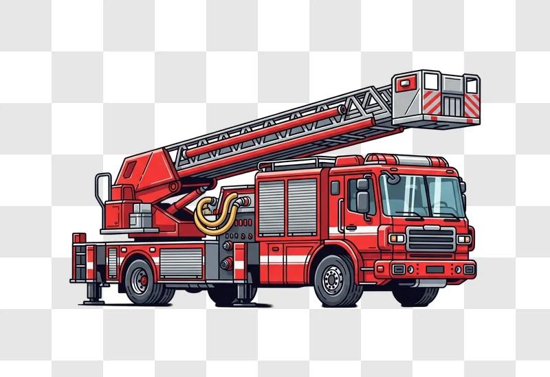 This striking Fire Truck With Extended Ladder image offers a high-quality graphic, perfect as a free image download for various creative projects. The illustration prominently features a bright red fire truck with its impressive ladder fully extended, set against a clear sky, making it an excellent design resource. Ideal for web design, social media posts, educational materials, or blog content, this visual asset provides a clear and engaging representation of emergency services equipment. Download this versatile graphic today to enhance your next project with a professional and impactful image.