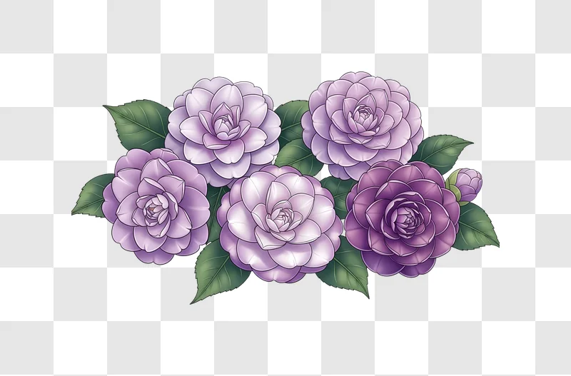 Behold the exquisite Five Purple Camellia Flowers With Leaves, a stunning visual that captures the delicate beauty of nature. This high quality graphic offers a vibrant illustration perfect for a wide range of creative projects. Download this free image to enhance your web design, brighten your social media posts, or add an elegant touch to posters and blogs. It serves as an excellent design resource, offering both aesthetic appeal and practical utility for various applications, ensuring your content stands out with its captivating detail.