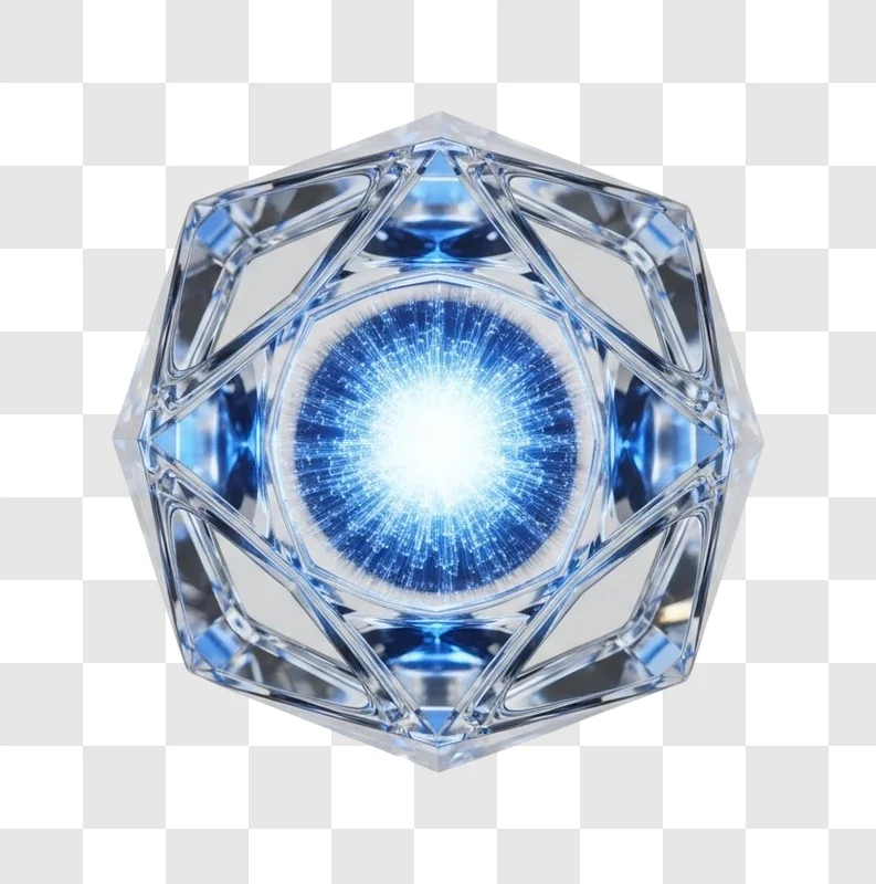 futuristic crystal polyhedron with pulsating blue