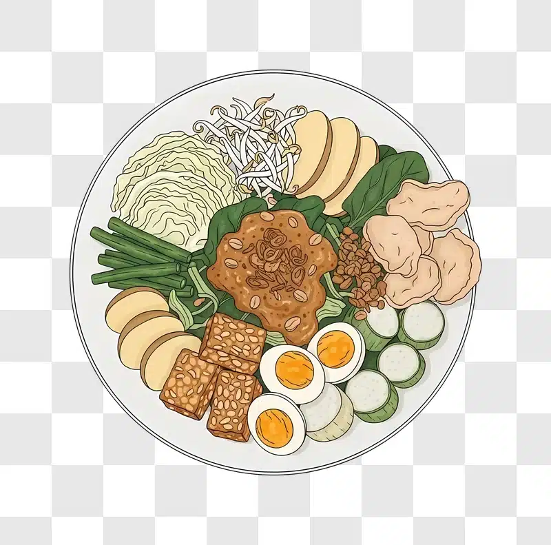Download high-quality graphics of Gado Gado Food Platter With Peanut Sauce and enhance your design projects with a touch of Indonesian cuisine.