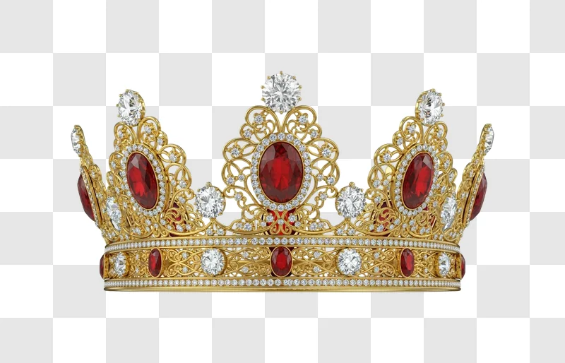 Download a free high-quality image of a Gold Crown With Red Jewels and Diamonds, perfect for various digital design applications.