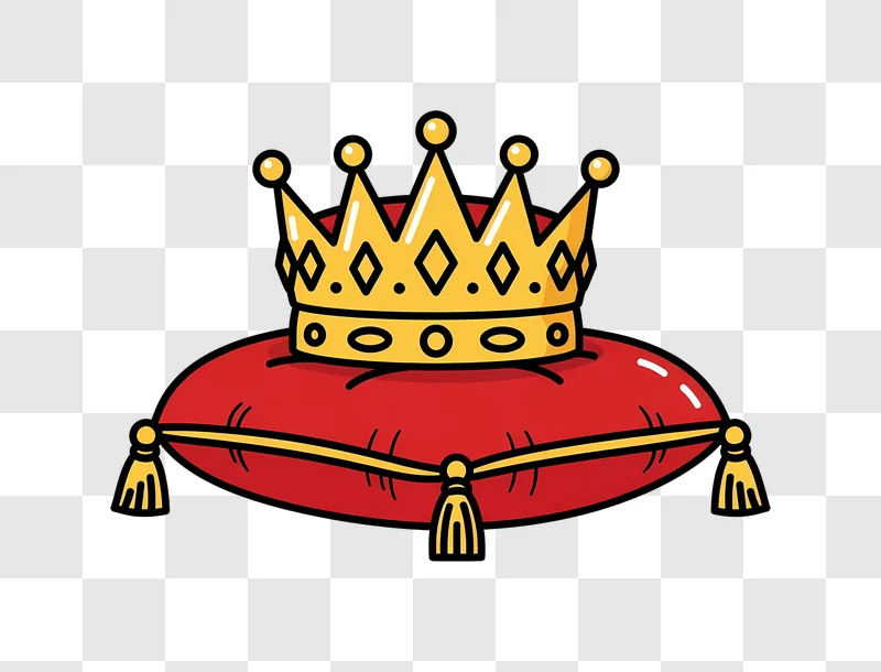 Download a free image of a Golden Crown on Red Velvet Cushion. High-quality graphic for your design needs.