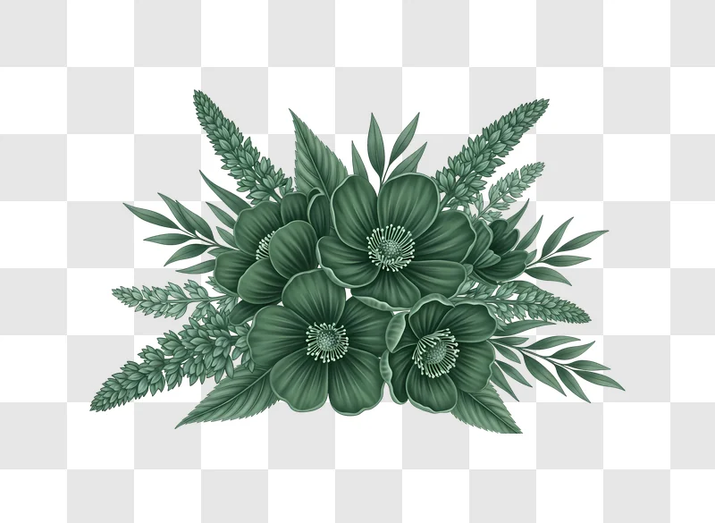 This Green Flowers and Leaves Arrangement presents a refreshing visual with its vibrant green hues and delicate floral elements, perfect as a free image download. The high quality graphic showcases a balanced composition of various botanical forms, ideal for enhancing a range of creative projects. Whether you need an appealing illustration for web design, a fresh visual for social media posts, a backdrop for posters, or a natural touch for blogs, this versatile design resource offers excellent utility. Download this image to elevate your branding and communication with its serene and organic aesthetic.