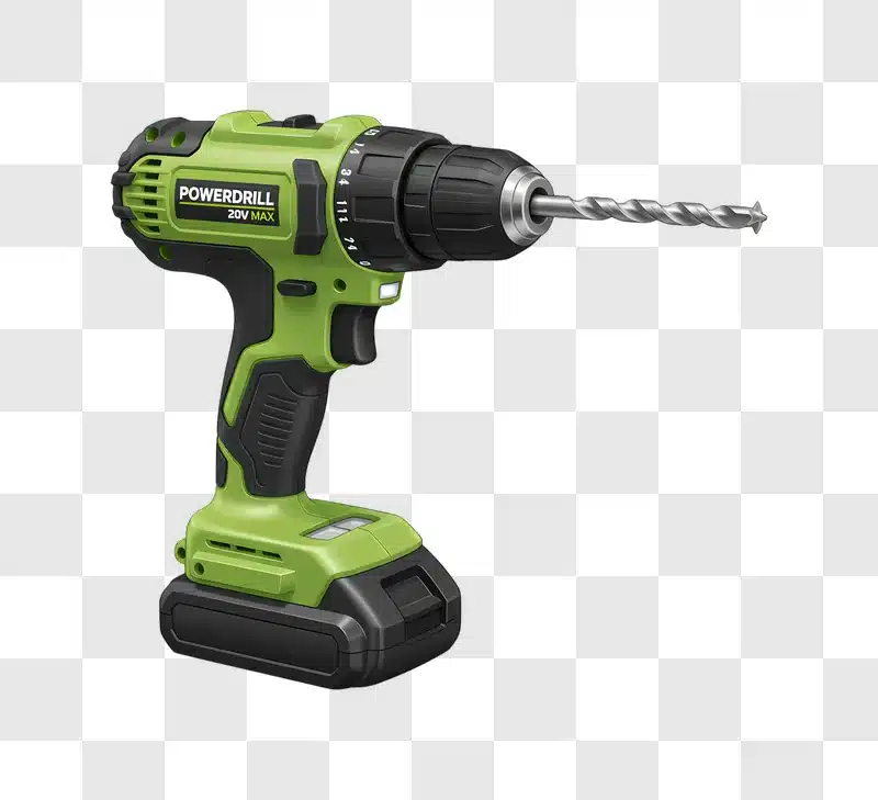 Green Power Drill With Drill Bit Ready for Use
