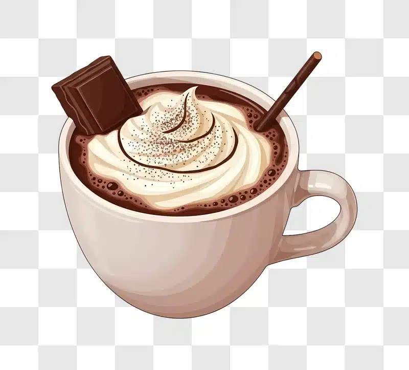 Hot Chocolate With Whipped Cream and Chocolate is a high-quality graphic illustration that offers a free download for your design needs. This rich and inviting image features a steaming cup of hot chocolate topped with a generous dollop of whipped cream and a sprinkle of dark chocolate shavings, creating a beautiful and mouthwatering scene perfect for web design, social media, posters, and blogs.