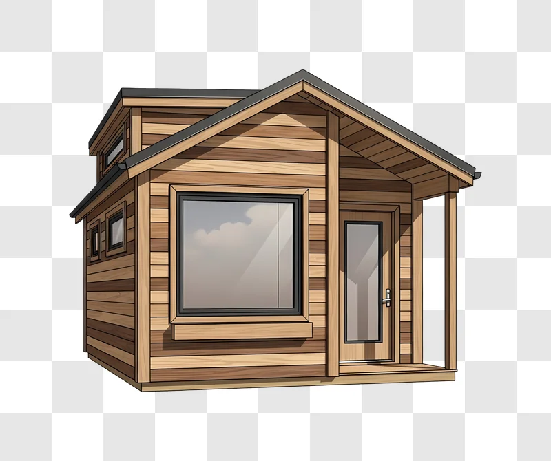 Download a free high-quality image of an Illustrated Modern Wooden Tiny House, perfect for various design projects and digital content creation.