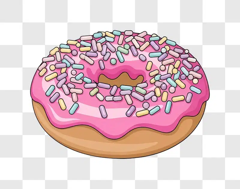 Illustrated Pink Donut With Rainbow Sprinkles