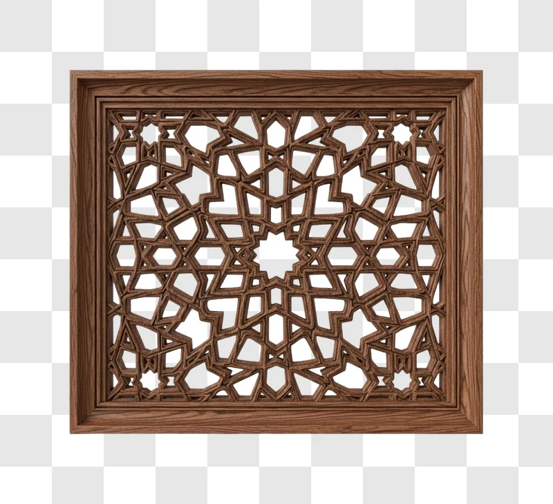 This Intricate Wooden Latticework Panel Design showcases a detailed, geometric pattern crafted with precision and a natural wood texture, offering a sophisticated aesthetic. This high quality graphic is available as a free image download, perfect as a versatile design resource for enhancing web design projects, social media posts, or blog headers. Its elegant illustration style makes it suitable for various creative applications, providing a refined visual element without requiring extensive editing.