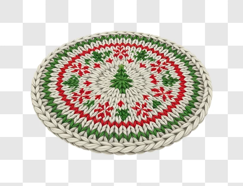 Discover a charming Knitted Christmas Tree Placemat With Red Green White Pattern, a delightful free image perfect for your holiday projects. This high-quality graphic showcases a cozy, handcrafted look with its intricate knit texture and festive color combination, making it an ideal design resource for various applications. Download this illustration to enhance your web design, social media posts, festive posters, or holiday branding with a touch of seasonal warmth and unique style.