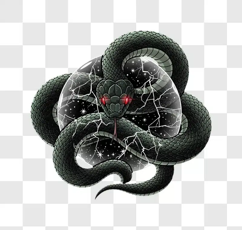 Menacing Black Snake Coiled Around Cracked Cosmic Orb