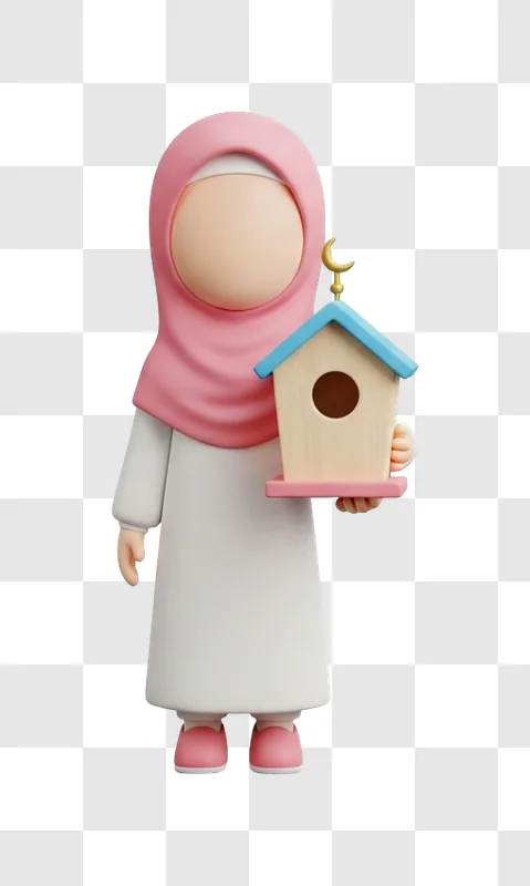 High resolution Muslim Girl Holding Bird House Toy image ready for free download, suitable for design projects, web use, presentations, and digital creatives.