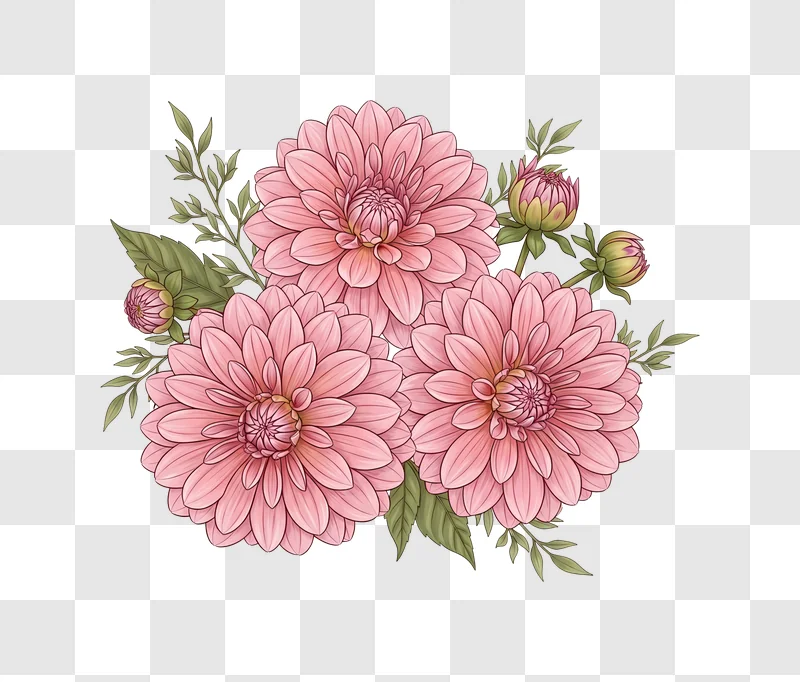 Download a free high-quality Pink Dahlia Flowers Illustration for your next design project.