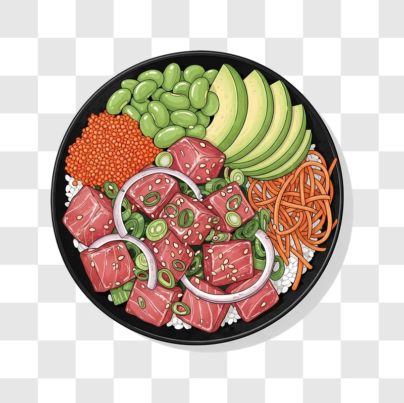 This vibrant Poke Bowl With Tuna Avocado and Lentils image is a perfect free image for your culinary projects. It showcases a beautifully arranged bowl filled with fresh ingredients, highlighting the rich colors of tuna, creamy avocado, and earthy lentils, offering a high-quality graphic for immediate download. This versatile design resource can elevate your web design, social media posts, or blog content with its appetizing appeal. Consider it for menu designs or recipe features.