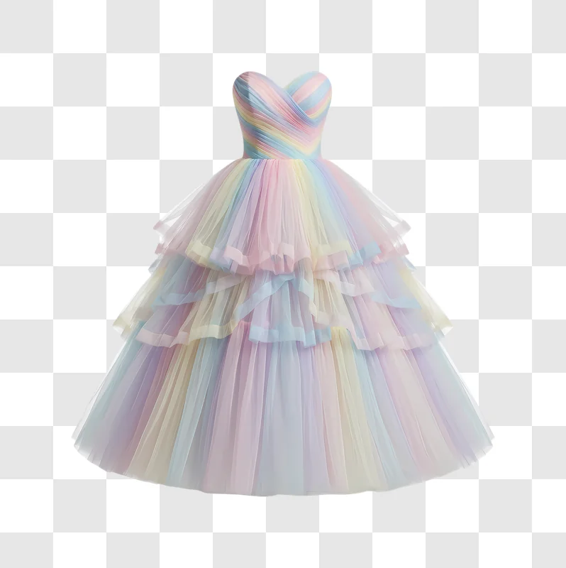 Get a free image of a stunning Rainbow Tulle Ball Gown with Sweetheart Neckline perfect for your creative projects.