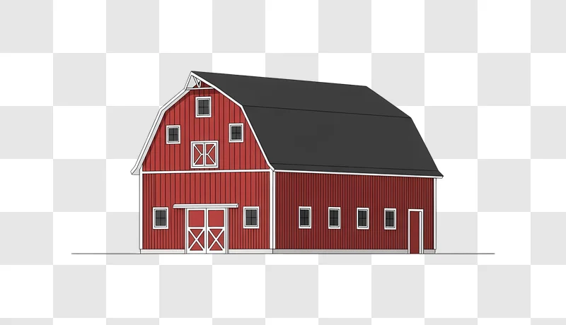 Discover a striking visual with this Red Barn With Black Roof and White Trim, a perfect free image for your next project. This high-quality graphic features a classic red barn, its bold black roof contrasting sharply with crisp white trim, set against a serene backdrop, ideal for adding a touch of rustic charm. You can download this versatile design resource for use in web design, social media posts, charming blog illustrations, or eye-catching posters. Let this distinctive barn image elevate your creative endeavors with its simple yet powerful aesthetic, offering a professional look for any application.