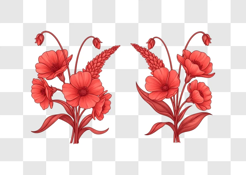 This Red Flowers and Wheat Illustration presents a vibrant and serene high-quality graphic, perfect as a free image download for various creative projects. Featuring delicate red blossoms intertwined with golden wheat stalks, this illustration offers a natural and rustic aesthetic. It serves as an excellent design resource for enhancing web design, social media posts, blog headers, or even simple branding elements, providing an appealing visual without any cost.
