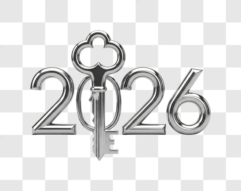 Discover the Shiny Metal Key in 2026 Numbers, a high-quality graphic that presents a sleek, metallic key intricately intertwined with the digits “2026” against a clean, modern background, perfect as a free image download for various creative projects. This illustration provides a versatile design resource, ideal for enhancing web design, social media posts, branding materials, or blogs, offering a crisp visual for future-themed content.
