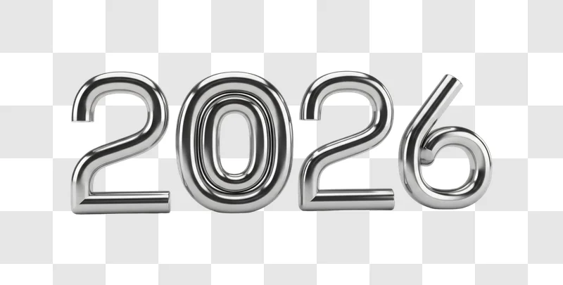 Presenting Shiny Metallic Numbers Two Zero Two Six, a striking high-quality graphic that brings a sleek, reflective aesthetic to any project. This free image download features bold, three-dimensional numerals with a polished metallic finish, perfect as a versatile design resource. Utilize this illustration to enhance web design elements, create impactful social media posts, design eye-catching posters, or add a modern touch to blogs and branding materials.