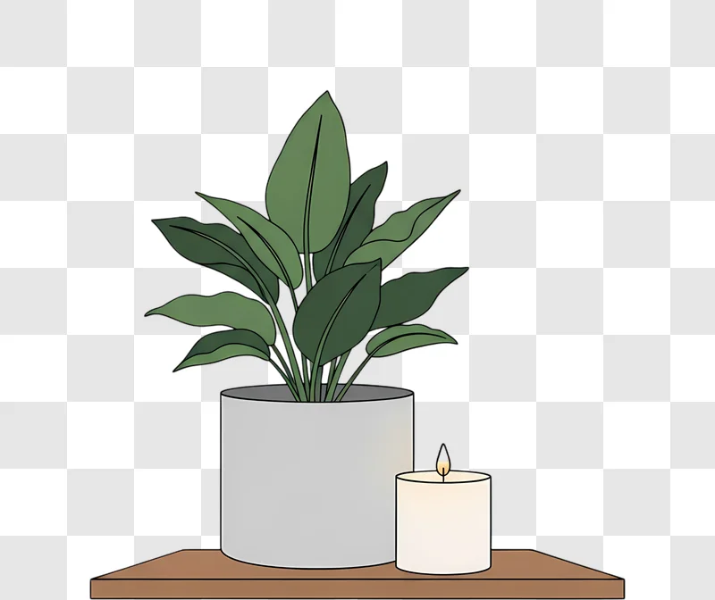 Download our Simple Illustrated Plant and Candle on Shelf for free. Enhance your designs with this free image, perfect for web and print projects.