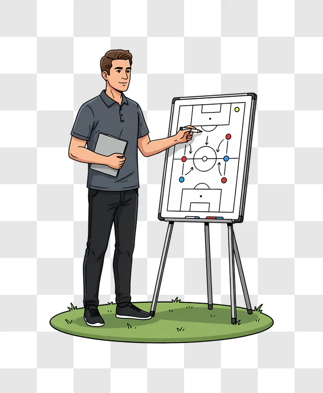 Get a free image of a Soccer Coach Explaining Strategy on Whiteboard to visualize your sports planning.