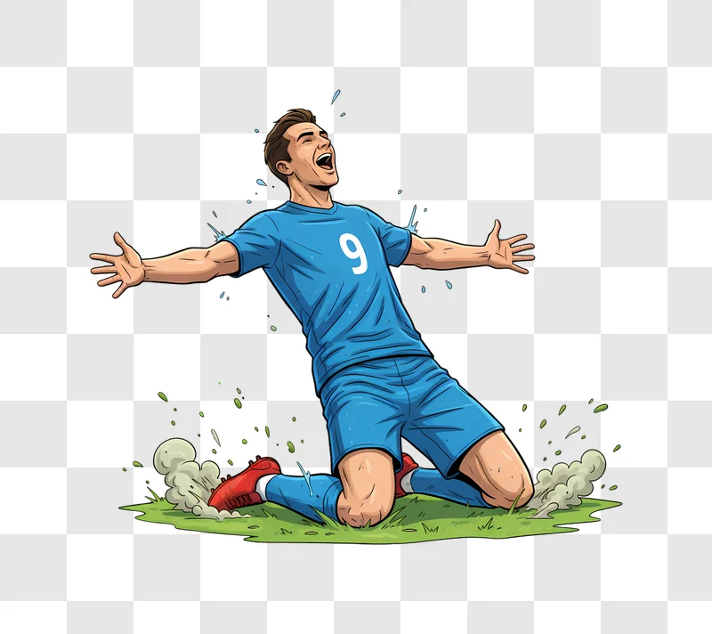 Soccer Player Celebrating a Goal With Arms Outstretched in Triumph