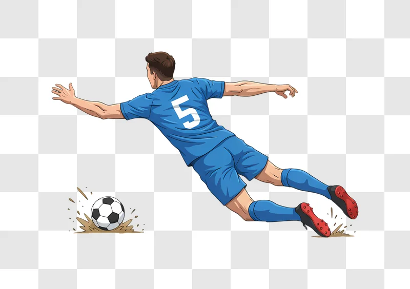 Soccer Player in Blue Uniform Kicking Ball With Intense Focus