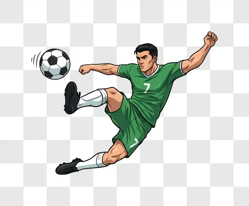 Soccer Player Kicking Ball Midair Dynamic Action Shot