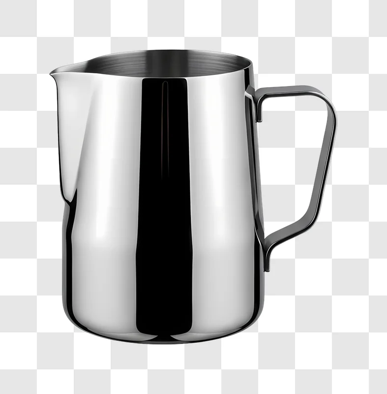 This Stainless Steel Milk Frothing Pitcher, depicted with its sleek, polished metallic finish and ergonomic handle, is available as a free image download for your creative projects. This high quality graphic provides a clean, professional illustration perfect for enhancing web design, social media posts, branding materials, or blogs. Acquire this versatile design resource to add a touch of modern kitchen aesthetic to your content.